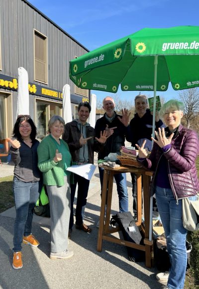 Einmal strahlendes Wetter und andermal wieder reichlich kalt – aber alle voll motiviert, für den Endspurt bis zur Kommunalwahl am 8.3. die Passanten für den Grünen Weg der Gemeinde zu gewinnen!