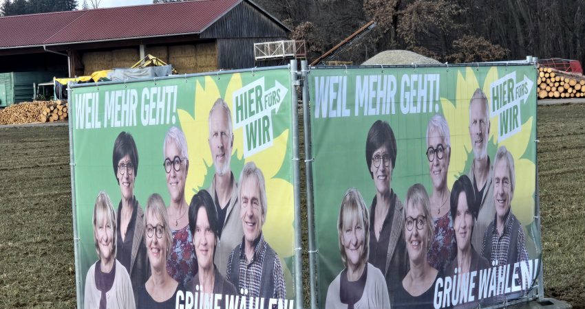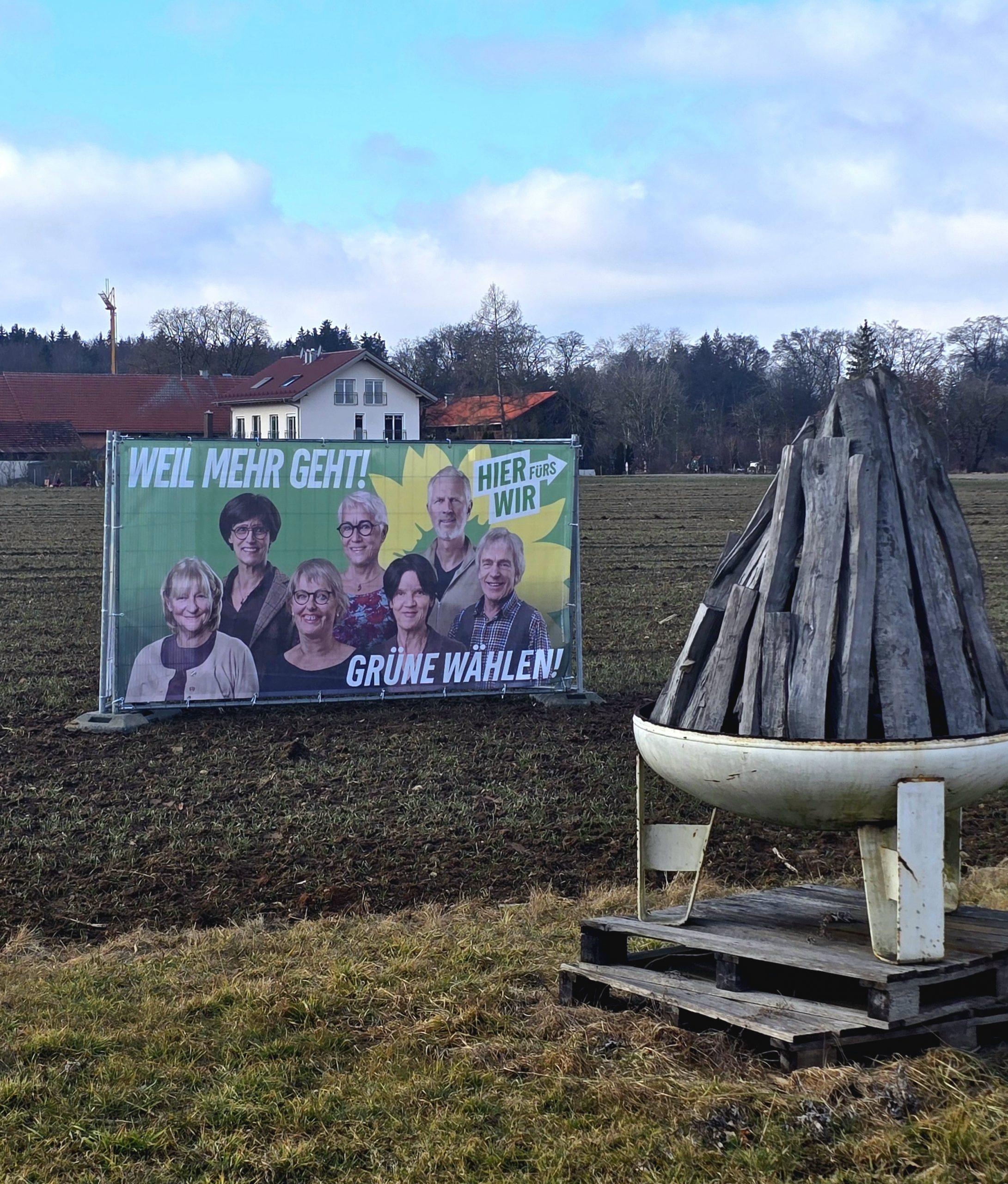 Auf dem Acker in Weichselbaum direkt neben der Hauptstraße – jetzt sichtbar auch der Banner der Grünen!